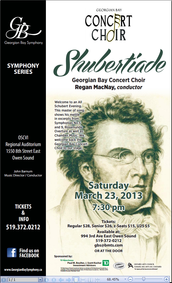 - Georgian Bay Symphony : SCHUBERTIADE - March 23, 2013